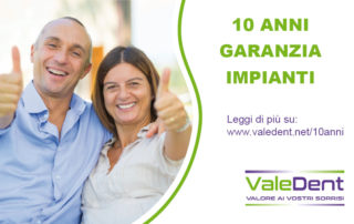 Al punto 8 della nostra “carta diritti del cliente” è scritto che hai diritto: “ad ottenere il massimo valore per il tuo denaro”. Per questo garantiamo completamente i nostri impianti orali per 10 anni.
