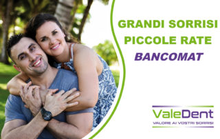 In ValeDent ti curiamo costantemente, anche per quanto riguarda gli aspetti economici. Con prezzi familiari e agevolazioni finanziarie che rendono il tuo pagamento comodo, leggero e rilassato. Puoi richiedere sia un finanziamento, senza interessi aggiunti, sia una dilazione di pagamento PagoDil, con piccoli acconti mensili direttamente dal tuo Bancomat